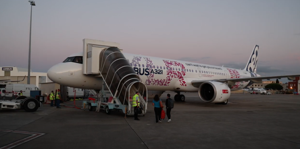 A pak jsme tu samozřejmě my! S potěšením mohu říci, že jsem první civilista (nezaměstnanec Airbusu), který kdy letěl na A321XLR, což je docela zvláštní. Připojuje se k nám také několik členů externích komunikačních a audiovizuálních týmů Airbusu. Velké poděkování patří Samu Rizzovi za to, že nám pomohl být zde, a Sylvainu Ramadierovi a Arthuru Allenovi za jejich pomoc s médii.